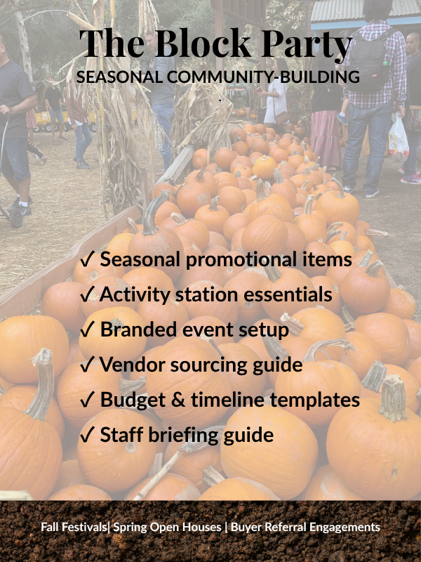 Right now, someone on your team is scrambling to pull together your next groundbreaking or model opening - ordering promotional items from five different vendors, Googling "fall festival ideas," and hoping nothing falls through the cracks. They're doing it because they have to, not because it's their strength.